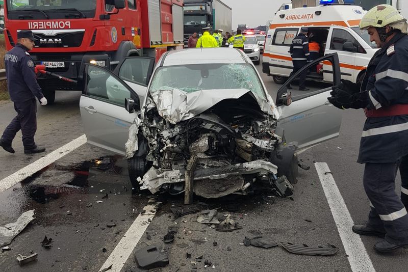 Un grav accident rutier s-a produs în această dimineață pe A1 (București-Pitești), în dreptul localității Corbii Mari, din Dâmbovița. Coliziunea s-a produs între un autoturism și o mașină de mare tonaj, la km 49 al autostrăzii. Traficul auto a fost blocat.
