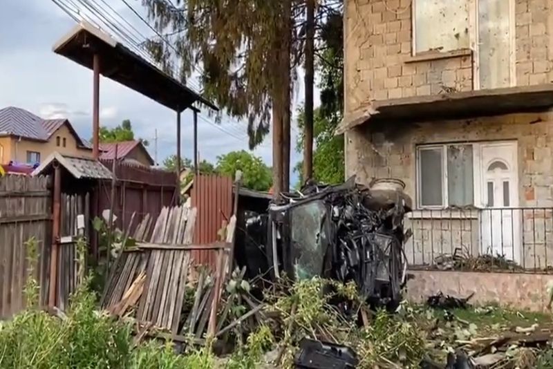 La față locului imaginea era cu adevărat cutremurațoare. Practic, din autoturism a mai rămas un morman de fiare, după ce acesta a părăsit partea carosabilă, a zburat pur și simplu prin gardul unei locuințe, aflată la marginea drumului, și s-a oprit în curtea gospodăriei, răsturnat pe o parte.