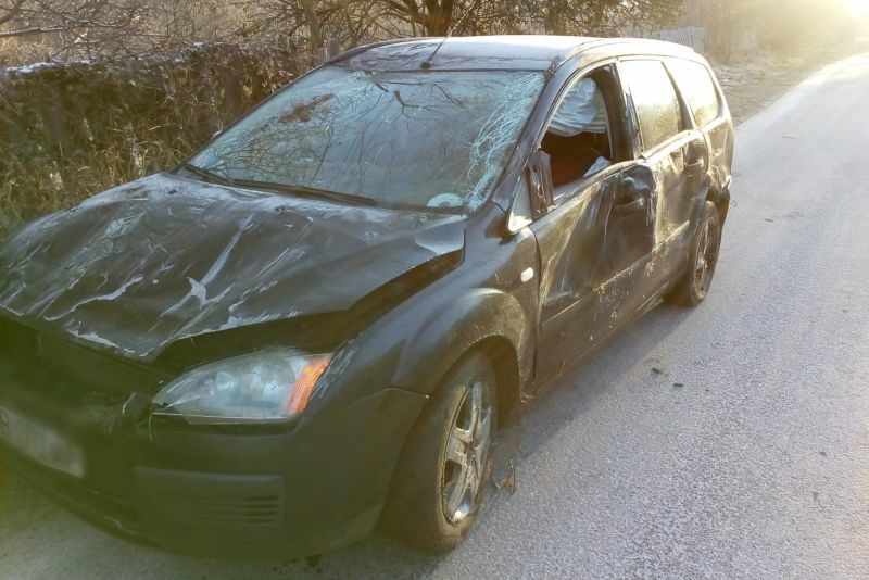 A făcut mașina praf. Autoturism s-a răsturnat în șanțul de la marginea drumului