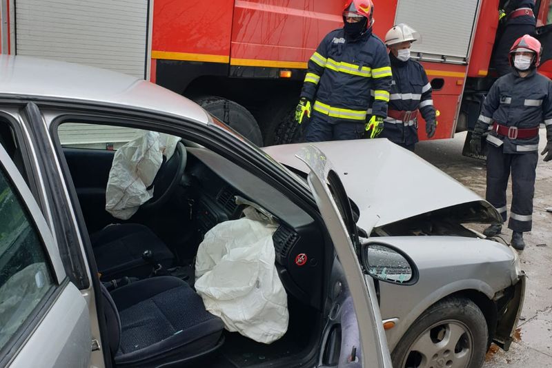 Persoana rănită,în urma coliziunii auto, a fost transportată de urgență la spital