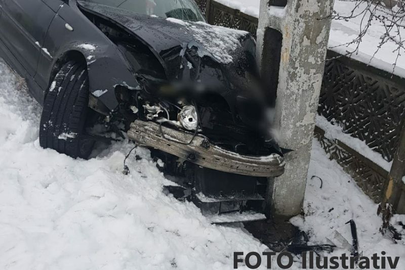 Accident la Lazuri, în dimineața zilei de Crăciun. Șoferul a avut noroc