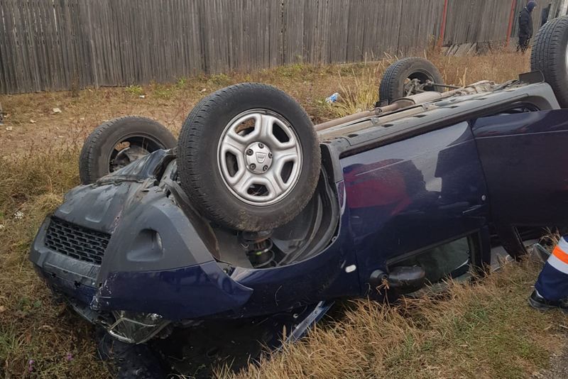 Accident fără victime la Răcari, în Dâmbovița. Un atoturism s-a răsturnat în afara părții carosabile. Mașina, în care se aflau doi bărbați s-a oprit direct în șanț.