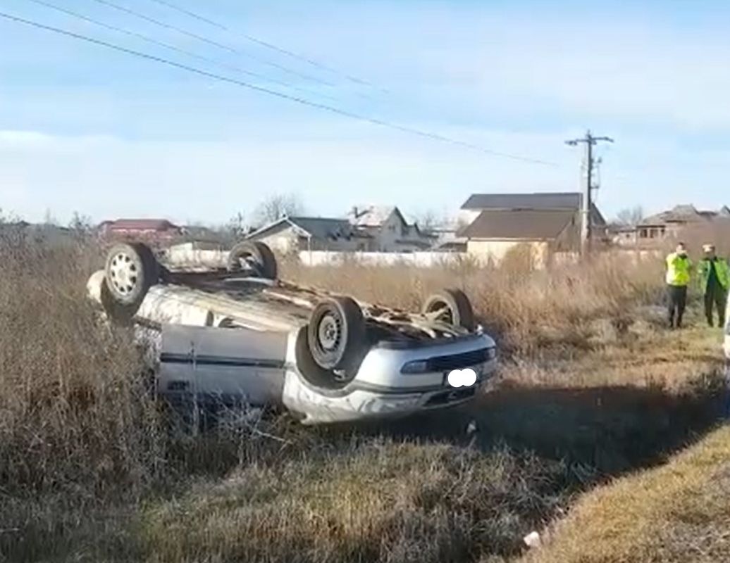 O mașină s-a răsturnat în afarapărții carosabile, pe un câmp