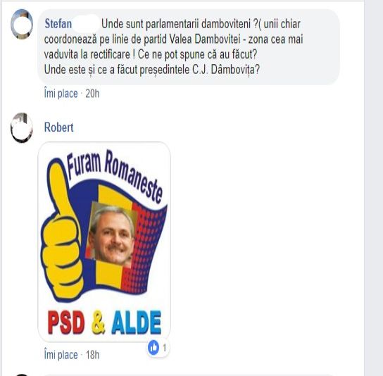 Nici comentatorii nu s-au lăsat mai prejos, postând comentarii în care PSD-ul și Liviu Dragnea sunt blamați deopotrivă, comentarii ce nu au fost moderate, ci păstrate ca atare în cronologie, de titularul paginii, Adrian Țuțuianu.