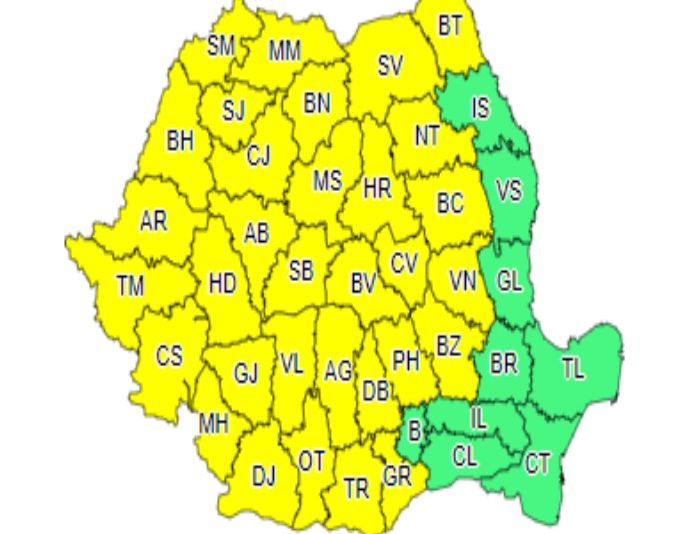 Meteorologii au emis o nouă atenționare de tip cod galben, pentru aproape toată țara. Confrom ANM: