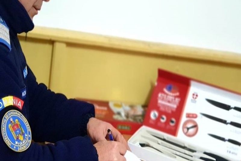 ''Mai multe seturi de cuțite și covoare au fost confiscate de către jandarmi în zona complexului Pavcom din Târgoviște și Piața 1 Mai Titu. Cei 2 tineri cu vârstă cuprinsă între 25 și 30 de ani au fost sancționați contravențional, pentru vânzarea ambulantă a oricăror mărfuri în alte locuri decât cele autorizate de primării, consilii judeţene sau prefecturi și efectuarea de activități de comerț cu bunuri a căror proveniență nu este dovedită, în condițiile legii.''