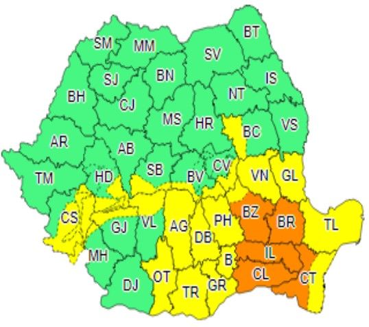 Conform celor mai recente avertizări transmise de specialiștii de la ANM: