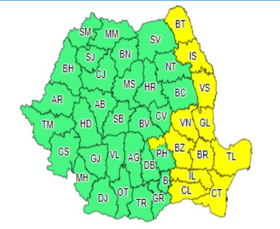 Codul galben este valabil doar până la ora 15.00, dar atenționarea se menține până în data de 4 mai