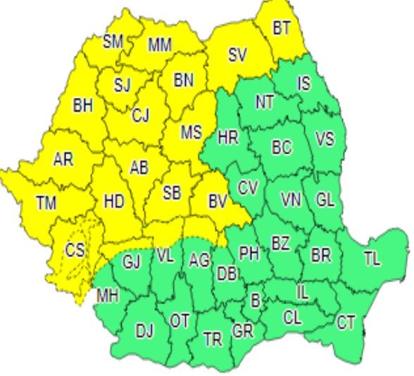 "În intervalul menționat, în vestul, centrul și nordul țării și local în zonele montane și submontane, instabilitatea atmosferică se va accentua și se va manifesta prin intensificări ale vântului, vijelii, averse torențiale, frecvente descărcări electrice și grindină. Cantitățile de apă vor depăși 20...25 l/mp și pe arii restrânse 40...50 l/mp