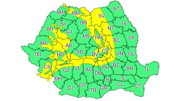 Interval de valabilitate: 10 martie, ora 12:00 - 11 martie, ora 16:00 Fenomene vizate: intensificări ale vântului la munte, ninsori viscolite la peste 1800 m; Zone afectate: conform textului și hărții
