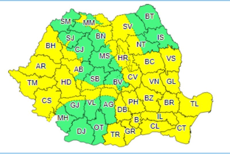 Codul galben a fost emis de specialiștii de la ANM, pentru intervalul 22 februarie (ora 14.00)-23 februarie (ora 16.00)