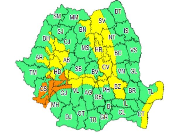 Rafalele vor atinge si 110 Km/h,în alte zone ale țării, unde va fi cod portocaliu