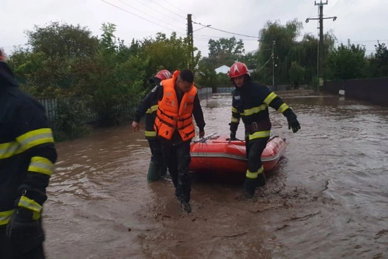 În continuare se intervine în localități din județul Galați cu bărcile pneumatice pentru evacuarea mai multor persoane surprinse ca urmare a inundațiilor produse.