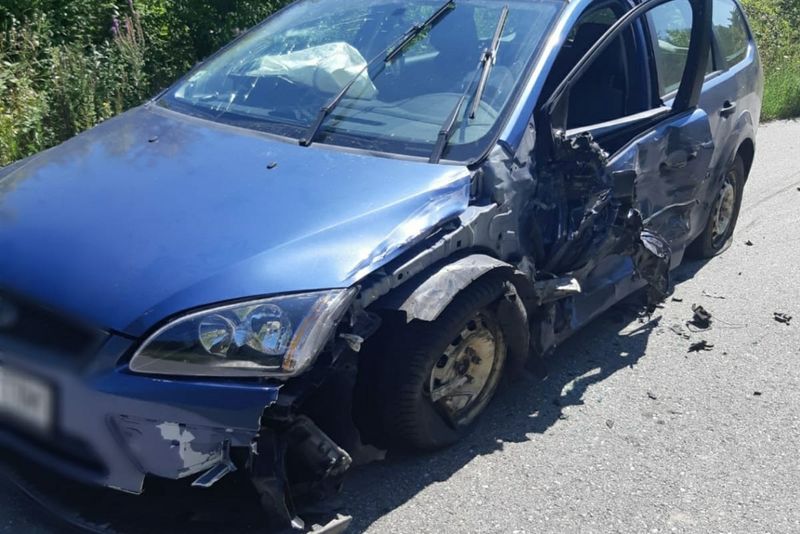 În urma coliziunii ambele mașini au fost serios avariate iar două persoane au fost rănite.