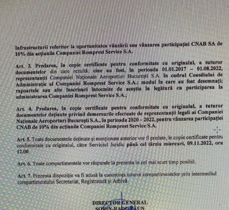 Realizatoarea emisiunii Culisele statului paralel - Anca Alexandrescu a prezentat documente care atestă faptul că, la nivelul Ministerului Transporturilor, se știa exact decizia pe care urma să o ia Compania de Aeroporturi București.