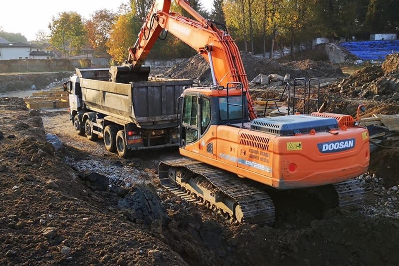 După demolarea tribunei a II-a (ce va deveni tribuna I, după renovare) și a peluzei a început și perioada de reconstrucție propriuzisă. La momentul actual,se toarnă: