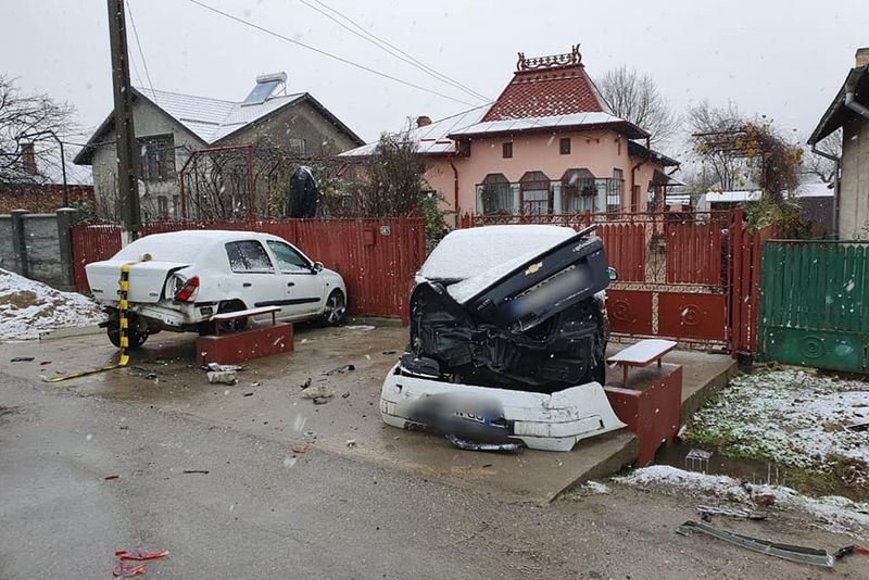 În urma impactului ambele mașini au fost proiectate în afara părții carosabile, în șant.