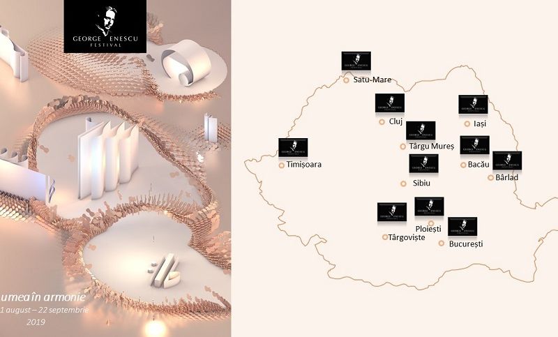 Concerte în cadrul Festivalului Internaţional „George Enescu” 2019 vor avea loc în unsprezece oraşe din ţară, faţă de şapte oraşe în ediţia anterioară.Publicul va avea ocazia să participe, sub egida festivalului, la concerte susţinute de artişti internaţionali împreună cu ansambluri şi orchestre locale la Cluj-Napoca, Timişoara, Iaşi, Sibiu, Târgu Mureş, Bacău, Bârlad, Târgovişte, Satu-Mare şi Piatra Neamţ, pe lângă evenimentele care se desfăşoară timp de 23 de zile, la Bucureşti.În total, în ţară, vor avea loc 24 de concerte, dublu faţă de ediţia anterioară. Artişti şi ansambluri de talie mondială, precum Elisabeth Leonskaja, David Grimal, La Grande Chapelle Madrid, Anna Tifu, Kamerata Baltica şi Charles Richard Hamelin, alături de mai tinerii artişti care au câştigat recent premii la prestigioase concursuri internaţionale de vioară şi pian, cum sunt Nobuyuki Tsujii şi Ziyu He vor prezenta recitaluri şi concerte alături de filarmonicile locale, sub bagheta unor dirijori ca Gabriel Bebeşelea, Lera Auerbach, Jayce Ogren, Cristian Lupeş, Marco Angius, Adrian Petrescu şi Brad Lubman.Concertele din ţară se adaugă celor 84 de concerte de la Bucureşti, care vor putea fi urmărite în toată ţara prin video-streaming, pe site-ul festivalenescu.ro.Achiziţionarea biletelor pentru concertele din ţară se va face local, modalităţile de achiziţie fiind stabilite de organizatorii din fiecare oraş. Anunţurile de punere în vânzare au început deja şi se vor continua în perioada următoare.Ajuns laa 24-a ediţie, Festivalul Internaţional „George Enescu” va avea loc în perioada 31 august - 22 septembrie 2019. În sălile de concerte din Bucureşti, vor urca pe scenă peste 2.500 dintre cei mai valoroşi muzicieni ai lumii şi vor fi prezentate 84 de concerte şi recitaluri.