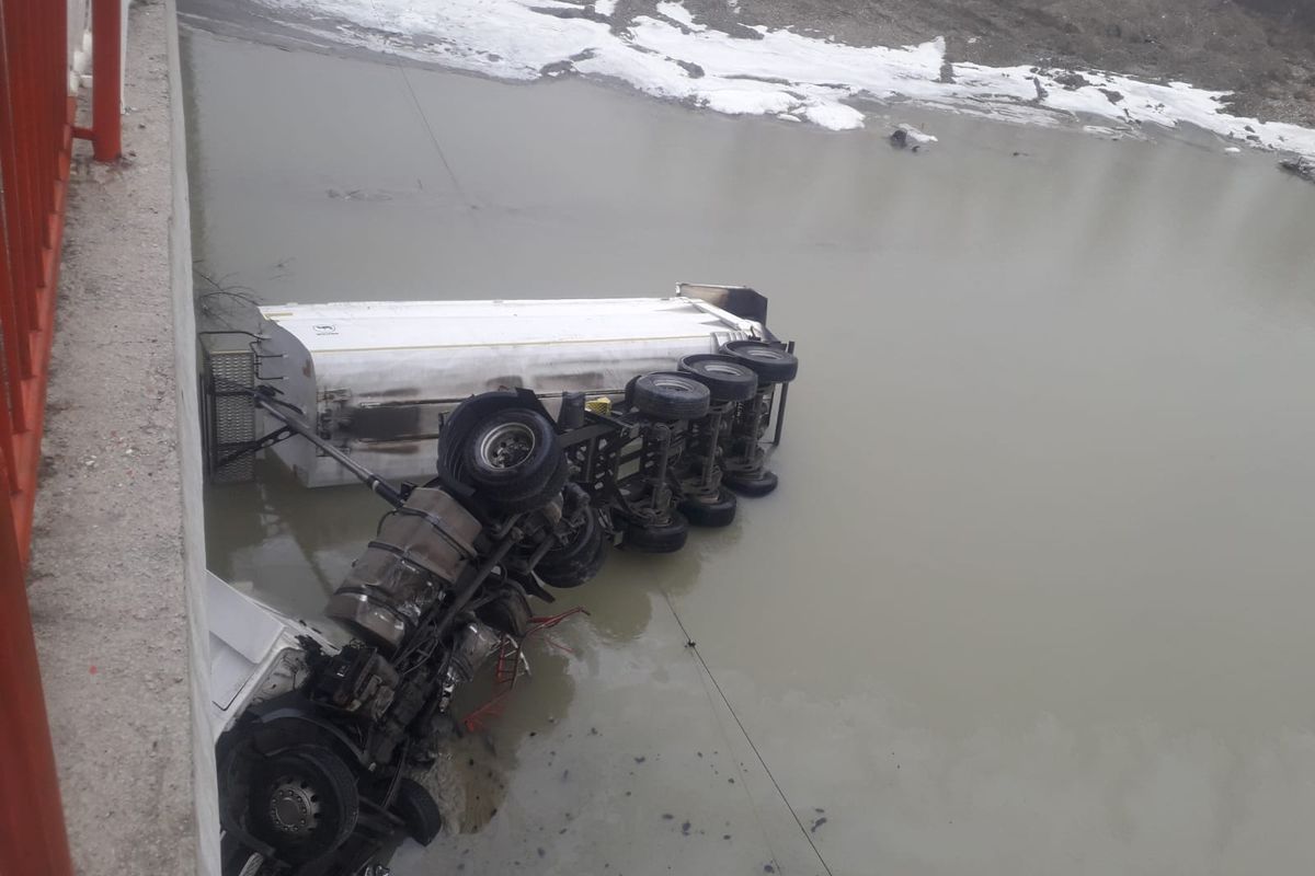 Accident spectaculos. Un autocamion a derapat și a căzut în râul Ialomița, lângă localitatea Finta, din Dâmbovița. Soferul a avut mare noroc.