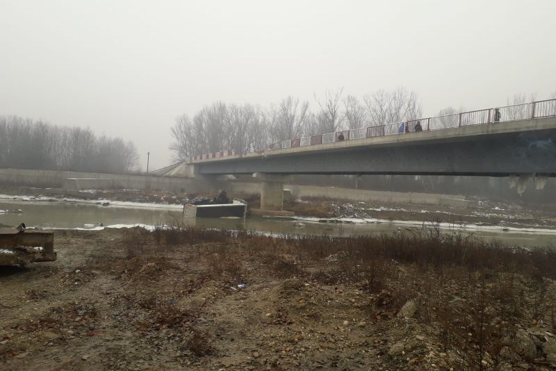 Foto| Camion căzut de pe pod,în râul Ialomița. Șoferul a scăpat miraculos