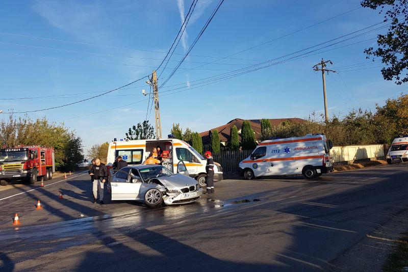FOTO Coliziune între 2 autoturisme. Trei persoane au ajuns la spital