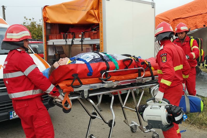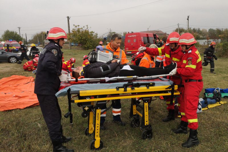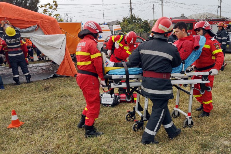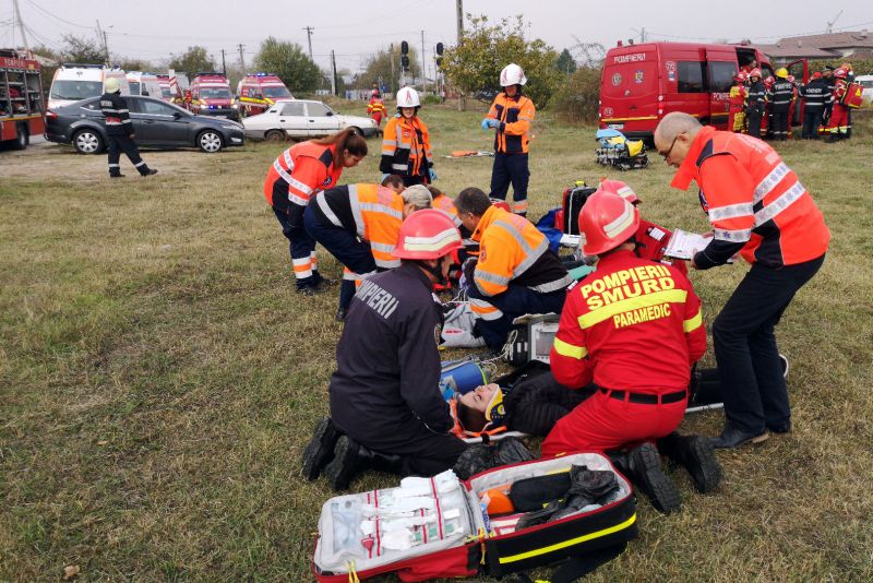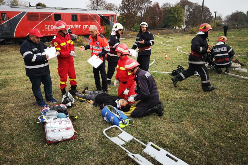 FOTO| Exercițiu ISU : A fost activat "Planul Roșu" de intervenție, la Găești, pentru accident feroviar
