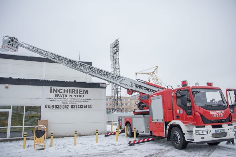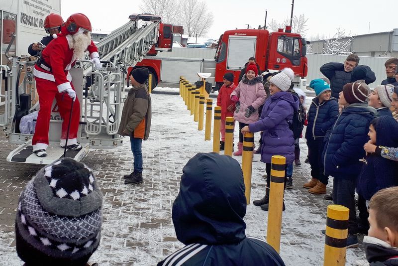 Foto| Moș Crăciun a venit cu autoscara de pompieri, pentru 100 de copii din Dâmbovița