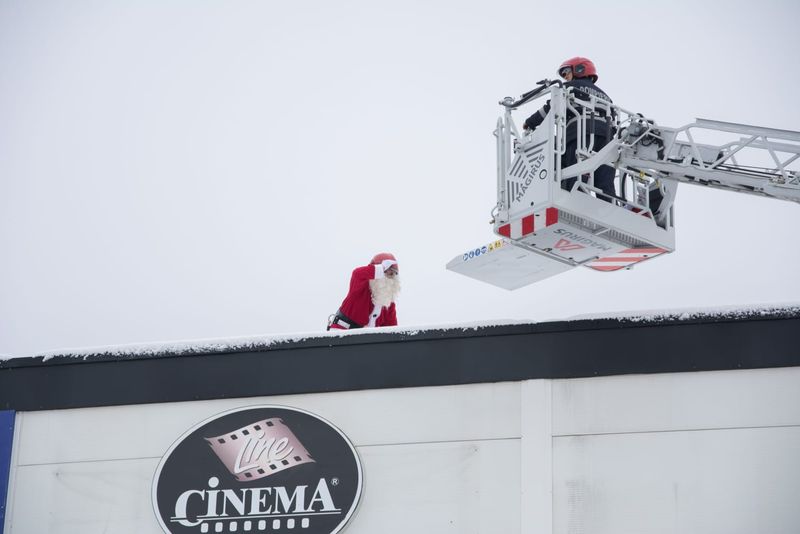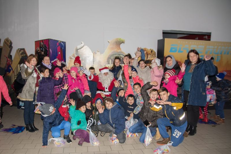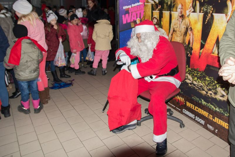 Copii l-au așteptat la intrarea unui complex comercial din Târgoviște. După ce au primit cadourile, de la Moșul ce a coborât din nacela autoscării de pompieri, Moş Crăciun le-a mai făcut o surpriză copiilor, invitându-i pe toţi să vizioneze un film de animaţie 3D la cinematograf, mulţi dintre aceştia neavând, până în prezent, o astfel de ocazie.