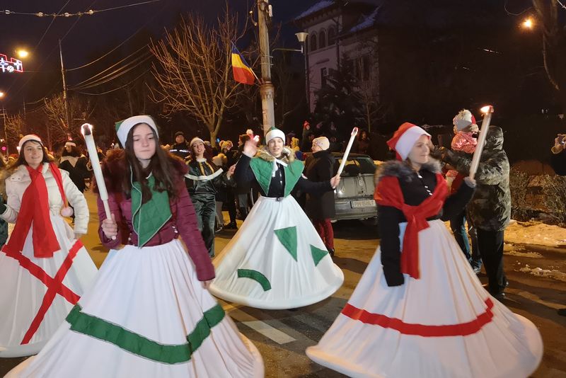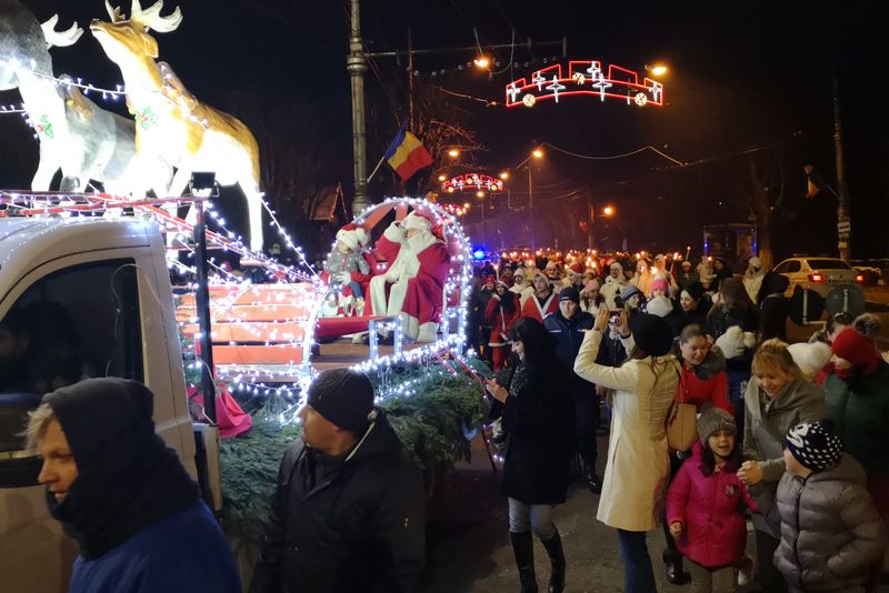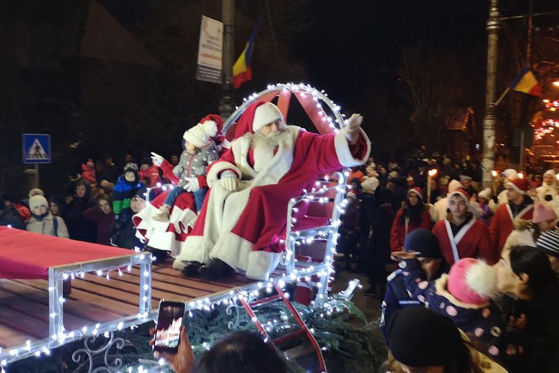 FOTO Moș Crăciun le-a adus daruri copiilor din Târgoviște, însoțit de un alai numeros