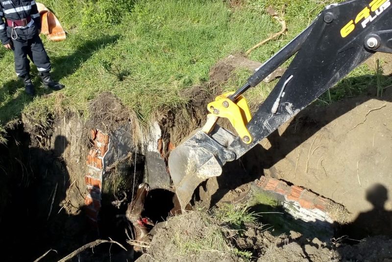 Intervenție mai puțin obișnuită a pompierilor dâmbovițeni. Aceștia au fost solicitați să ajute la scoaterea unei văcuțe ce riscă să moară după ce căzuse într-un canal de scurgere, de pe raza comunei dâmbovițene Doicești.