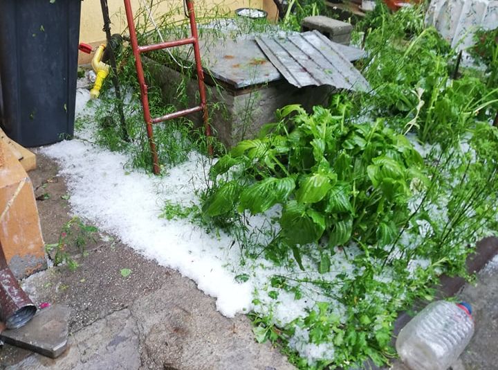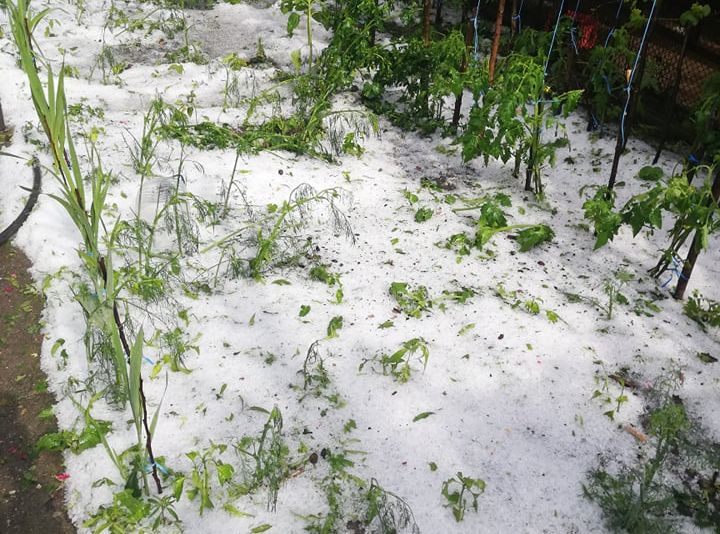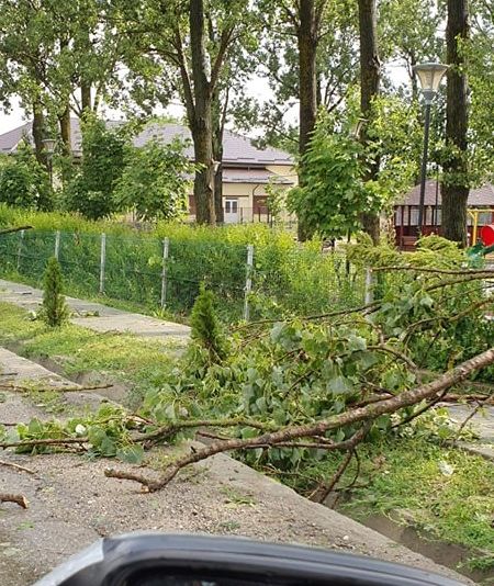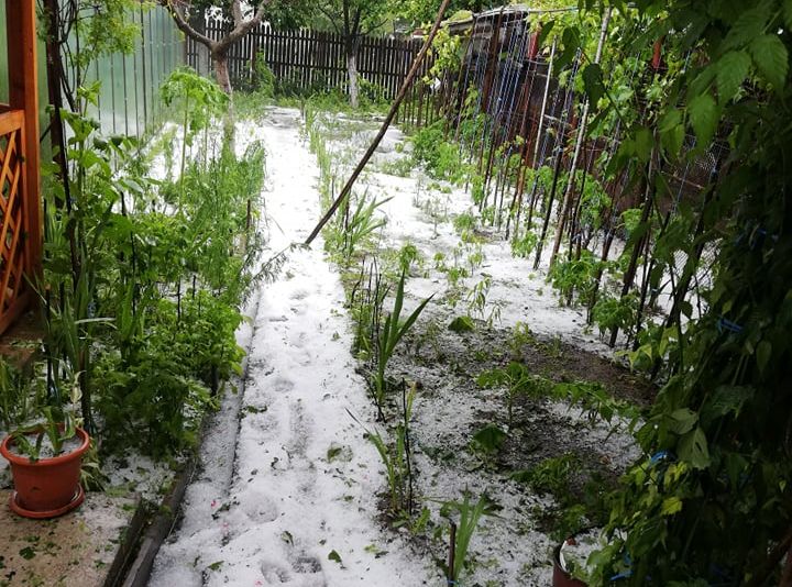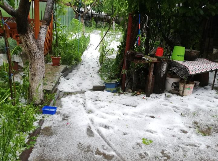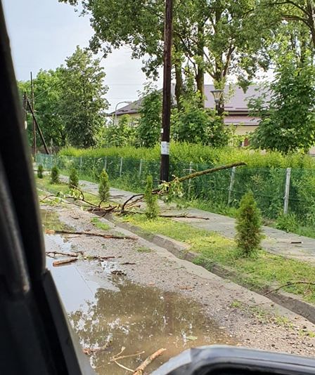 FOTO Prăpăd în Valea Mare. A căzut gheață din cer minute în șir, iar vântul puternic a doborât copacii