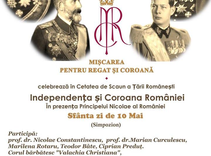 Mișcarea pentru Regat și Coroană a celebrat la Târgoviște, cetatea de scaun a Țării Românești, Independența și Coroana României. Așa a fost anunțul prin care au fost înștiințați doritorii, de a participa la evenimente, că la Târgoviște se celebrează Ziua de 10 Mai, sărbătoare națională, cu întreita sa semnificație - 153 de ani de Dinastie Regală, 142 de ani de Independență, 138 de ani de la proclamarea Regatului Român, în data de 8 mai.