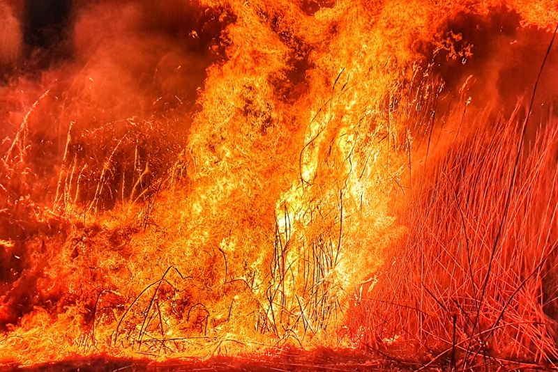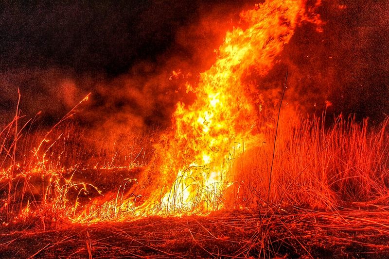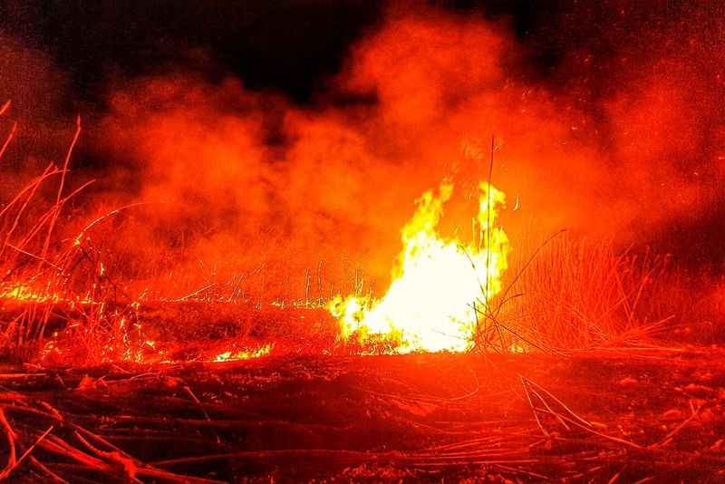 La Bucșani (foto articol), în Dâmbovița, focul a mistuit în noaptea de 4-5 aprilie suprafețe importante de teren cu vegetație uscată. Pompierii suspectează ca focul a fost pus intenționat.