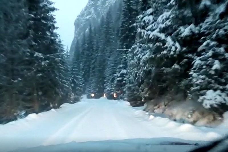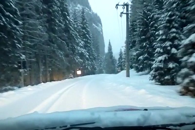 Traficul auto, la primele ore ale dimineții în zona stațiunii Padina-Peștera, din Bucegii dâmbovițeni se desfășura în condiții de iarnă, la primele ore ale dimineții de 15 decembrie.