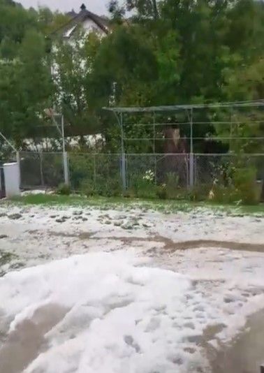 Doar 10 minute a durat episodul de grindină și toată localitatea a fost acoperită de gheață