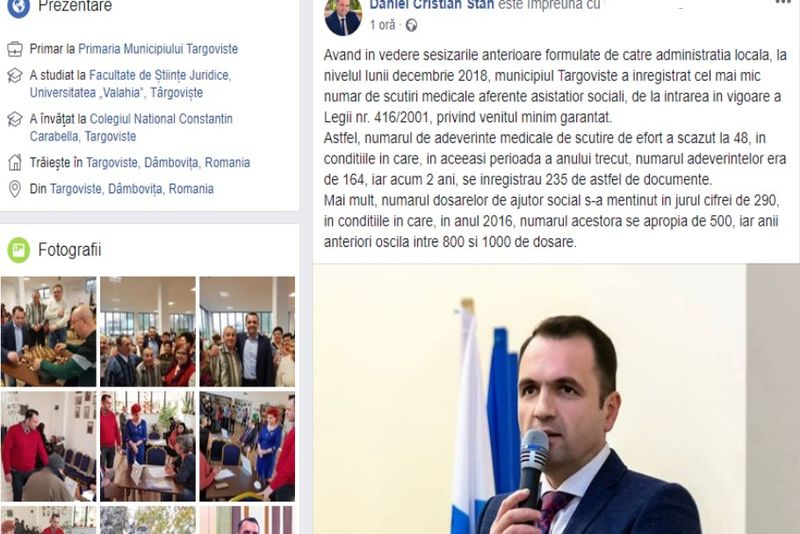 "Avand in vedere sesizarile anterioare formulate de catre administratia locala, la nivelul lunii decembrie 2018, municipiul Targoviste a inregistrat cel mai mic numar de scutiri medicale aferente asistatior sociali, de la intrarea in vigoare a Legii nr. 416/2001, privind venitul minim garantat.Astfel, numarul de adeverinte medicale de scutire de efort a scazut la 48, in conditiile in care, in aceeasi perioada a anului trecut, numarul adeverintelor era de 164, iar acum 2 ani, se inregistrau 235 de astfel de documente. Mai mult, numarul dosarelor de ajutor social s-a mentinut in jurul cifrei de 290, in conditiile in care, in anul 2016, numarul acestora se apropia de 500, iar anii anteriori oscila intre 800 si 1000 de dosare."