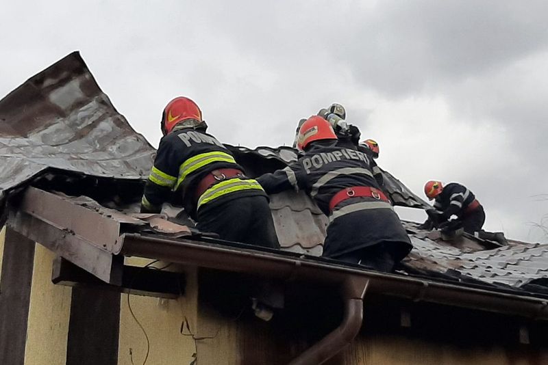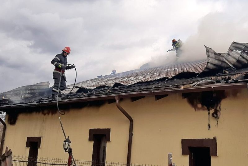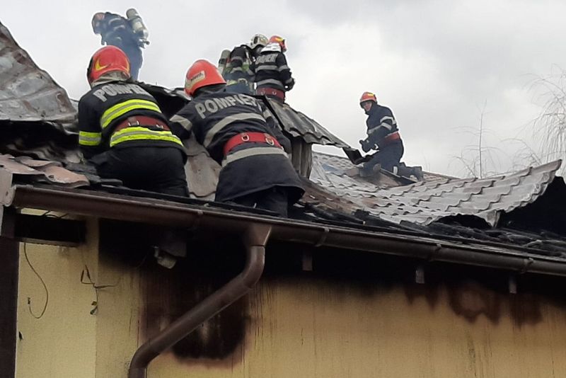 Se pare ca a fost vorba doar de acoperisul locuinței ce a fost cuprins de flăcari, la ora intervenției un nor gros de fum ieșind din interiorul casei.