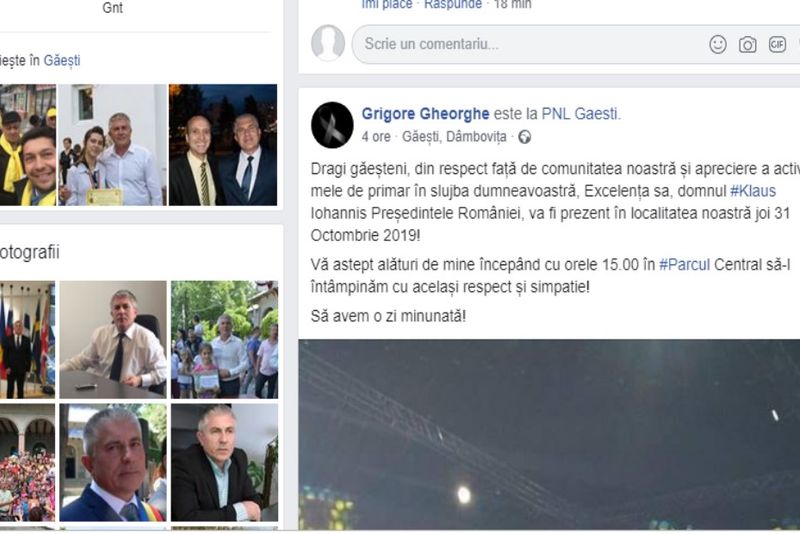 Situație mai puțin obișnuită într-o localitate din Dâmbovița. Primarul liberal al orașului Găești, se laudă singur, pe facebook, și anunță că președintele Klaus Iohannis vine să-l vizitize, pentru că apreciază ce face pentru comunitate.
