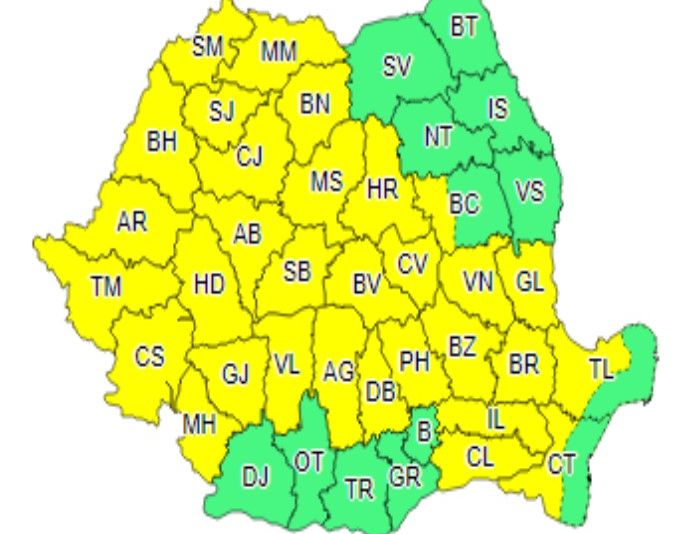 ): A fost emis o alertă de tip Cod Galben valabilă până în seara zilei de 16 iunie.