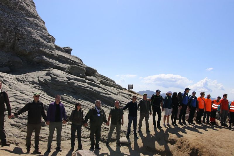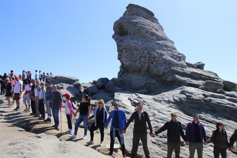 Lanț uman în jurul Sfinxului din Bucegi, pentru a atrage atenția asupra deteriorării monumentului