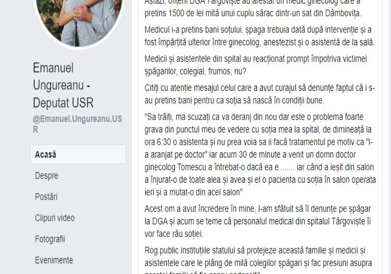 Postare facebook, Emanuel Ungureanu, deputat USR.