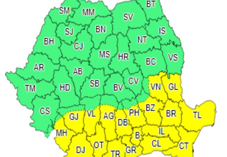 Interval de valabilitate: 01 mai, ora 10 – ora 21 Fenomene vizate: intensificări susținute ale vântului; Zone afectate: conform textului și hărții;