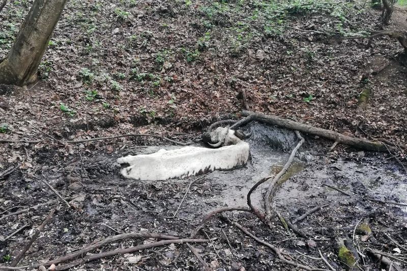 Foto - "Minunea" de Paște. Pompierii au reușit să salveze o vițică scufundată într-o groapă cu reziduuri petroliere, la Moreni