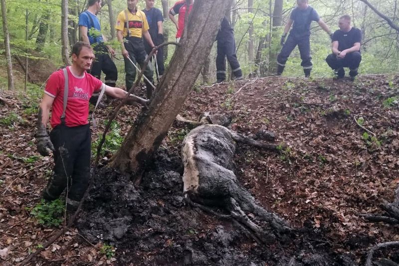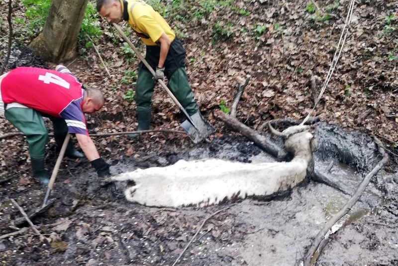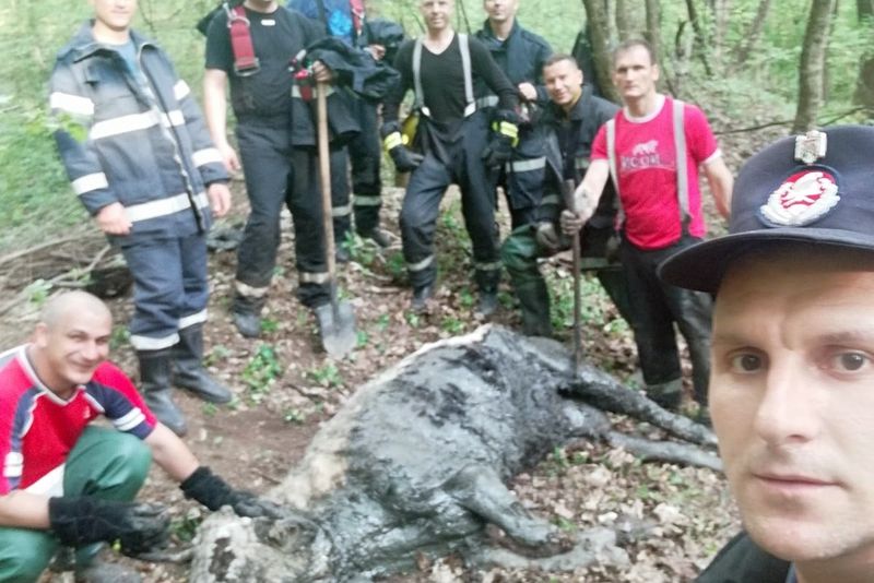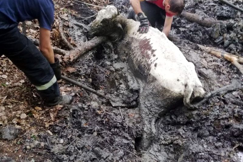 Sosiți la fața locului pompierii au constatat ca animalul era afundat cu aproximativ 80% din suprafața corpului într-o gropă plina cu noroi și reziduuri petroliere. După o muncă aproape imposibilă pompierii au reușit să scoata animalul teafar din groapă. proprietarul animalului spune ca vițica dispăruse de acasă de aproape o săptâmână si cel mai probabil de atunci a cazut în gropă supraviețuind fără apă sau mâncare în această perioadă. Zona în care se afla animalul este una izolată, doar norocul făcând ca o persoană, ce a trecut întâmplator prin zona, să vada animalul captiv și să sune la 112.