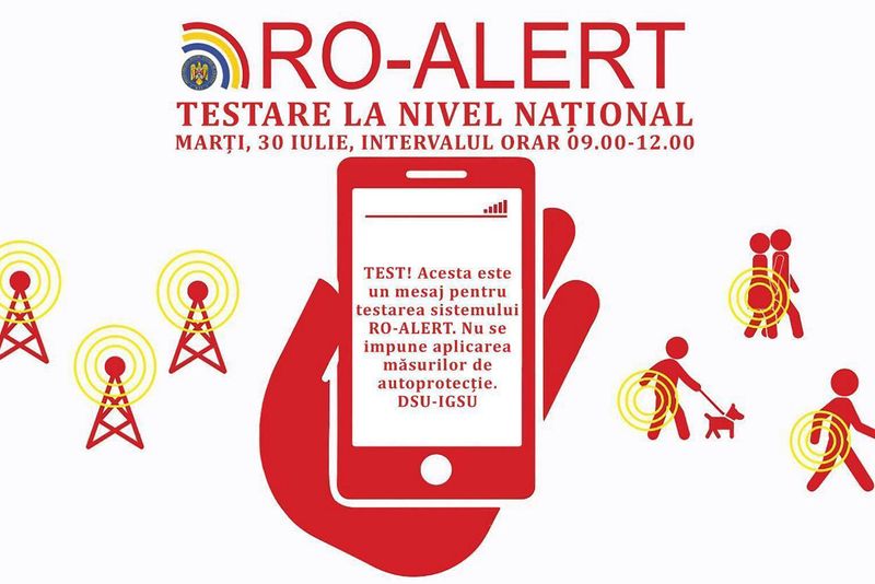 Marți, 30 iulie 2019, în intervalul orar 09.00-12.00, la nivel național, prin intermediul Sistemului RO-ALERT vor fi transmise mesaje test de avertizare a populației pe toate telefoanele mobile din aria de acoperire a celulelor de telefonie.