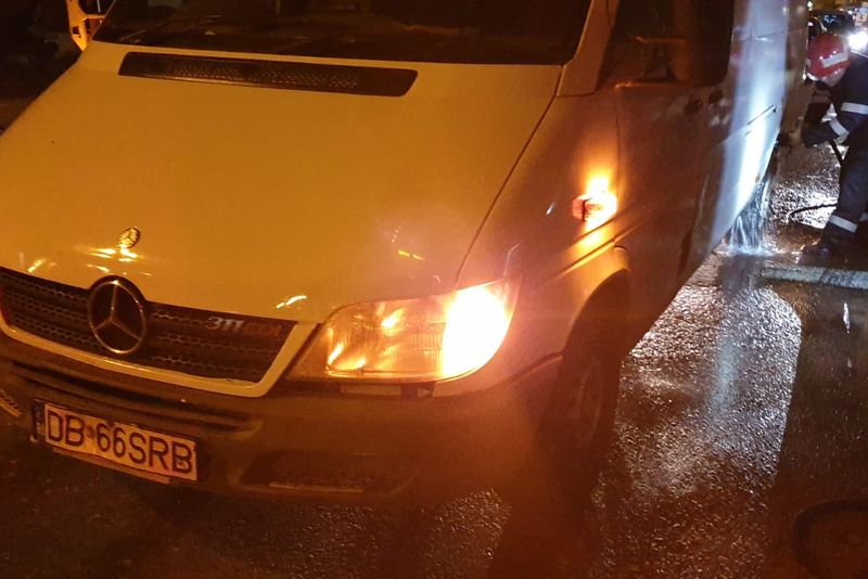 În timpul în care un echipaj SMURD, de la ISU Dâmbovița, se pregătea să plece la o intrevenție, paramedicii au obsevat că din partea din spate a unei autoutilitare, parcate în apropierea sediului ISU,ieșea fum.