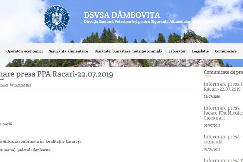 Nici la nivel de DSVSA Dâmbovița anunțul cu noile focare de PPA nu sunt actualizate, ce mai recent anunț fiind din data de 22 iulie 2019. Între timp focarele noi apărute în județ se pare că sunt trecute sub tăcere.