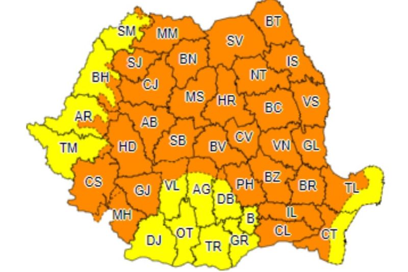 Cod portocaliu la munte, cod galben în restul judetului Dâmbovița