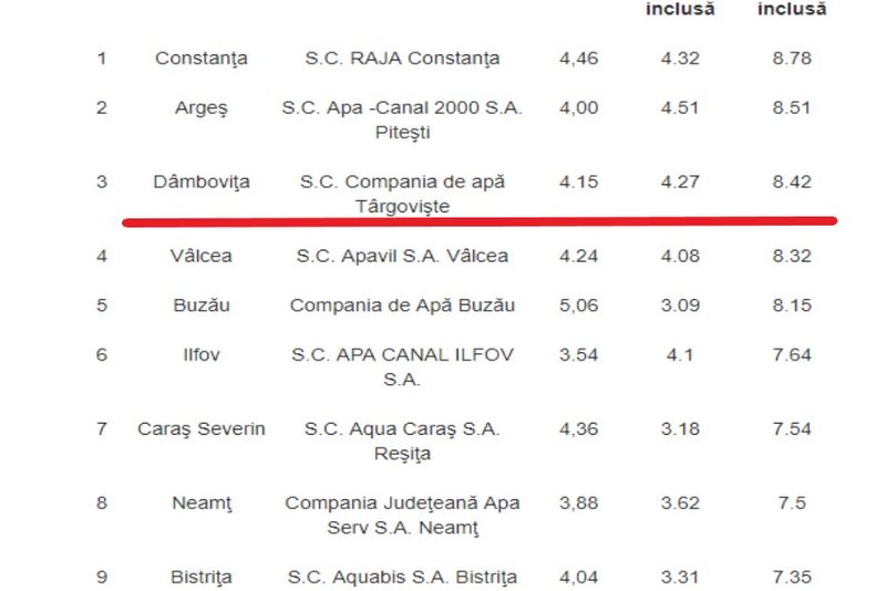 Numai că facturile, unde este prins și prețul plătit pentru canalizare, plasează CATD tot în top trei național, prin prețul plătit pentru metrul cub de apă de canalizare.