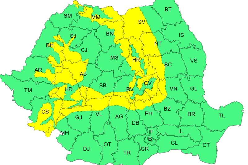 Pentru intervalul 1 ianuarie, ora 23:00 – 2 ianuarie, ora 18:00, a fost emisp avertizare cod galben.